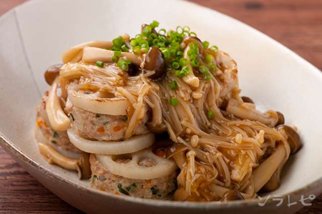 食物繊維たっぷりきのこあんかけレンコンのはさみ焼きのレシピ ソラレピ