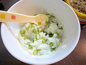 離乳食中期 インゲンとたまごのおかゆ レシピ 作り方 By Life人生に捧げるメニュー 楽天レシピ