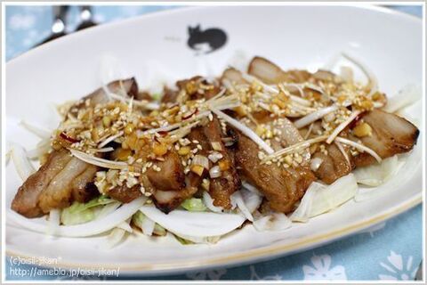 炙りチャーシューと玉ねぎのサラダ 材料(2〜3人分) ・チャーシュー:100g ・玉ねぎ:1/2個 ・レタス:適量.