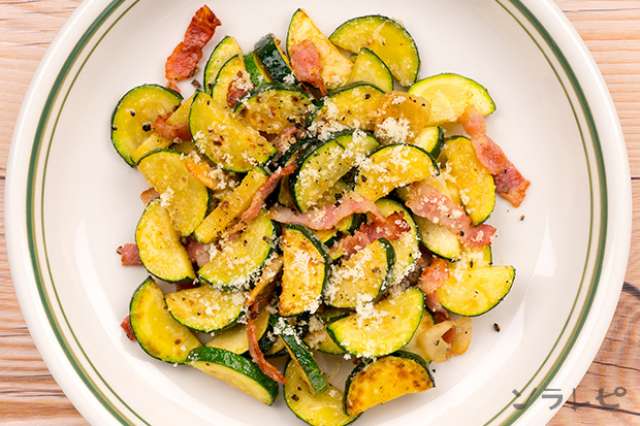 鉄板の美味しさズッキーニとベーコンのニンニク炒めのレシピ ソラレピ